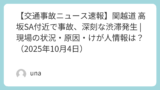 - 交通事故速報:国道1号 磐田バイパス下り森岡IC付近で事故、車線規制で渋滞発生(2025年6月11日)