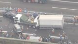 この衝突事故の影響により、国道1号 富士由比バイパス 下り線は、高浜ICから蒲原西ICの間で通行止めとなっています。この影響で、高浜ICを先頭に数キロにわたる深刻な渋滞が発生しており、現場を抜けることはできません。事故車両の撤去と現場検証、路面の清掃作業には長時間を要することが予想され、通行止め解除の見通しは立っていません。