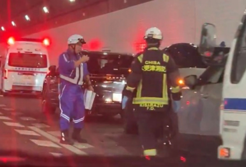 交通事故速報:東京湾アクアライン 上り アクアトンネル内で4台絡む玉突き事故